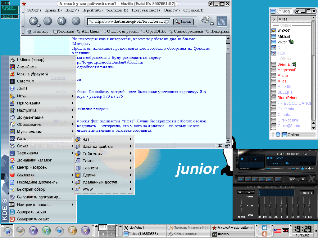 Предлагаю всем желающим разместить здесь пиктограммы своих рабочих столов, кому есть что размещать. Присылайте мне на электронную почту изображения ваших рабочих столов (+ ваш ник и любые комменарии), размером не более 300 килобайт. Письма бОльших размеров будут игнорироваться! По мере накопления новых поступлений страничка будет обновляться